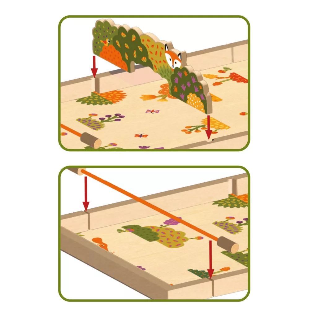 Ezzel a nagy, kétoldalas fatáblával kétféle játékot is játszhattok, ami fejleszti a ügyességet, a reflexeket és a térlátást. Nincs több unalmas pillanat, csak tiszta, fa játék öröm!