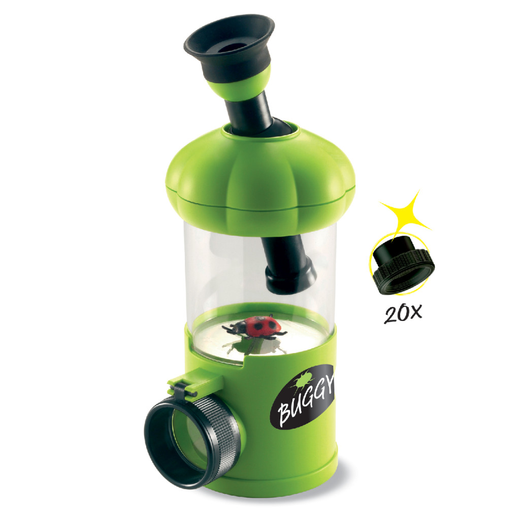 A Hármas ultra bogárvizsgálónak köszönhetően a gyerekek nagyobbítóval közelről vizsgálhatják meg a begyűjtött bogarakat. A felülnézetben elhelyezett 10 és 20x-ros nagyítású mikroszkóppal a bogarak részletesebb megfigyelése is lehetséges. Az oldal- és alulnézetben pedig 3x-ros nagyításban tekinthetők meg az állatkák.