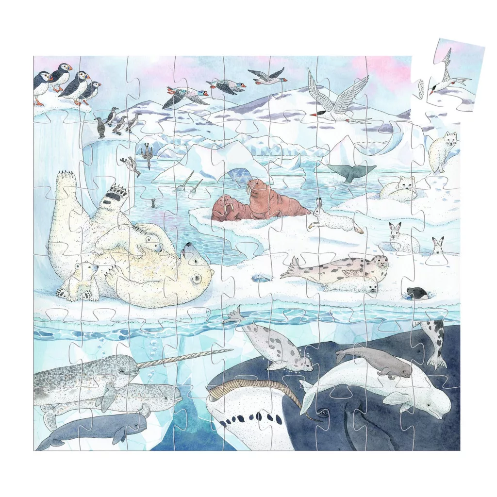 Vidd haza az Északi-sarkvidék varázslatos világát ezzel a gyönyörű, 54 darabból álló formadobozos puzzle-val. A részletgazdag, színpompás illusztrációk garantáltan elvarázsolnak, miközben a gyermeked a jeges táj állataival ismerkedik.